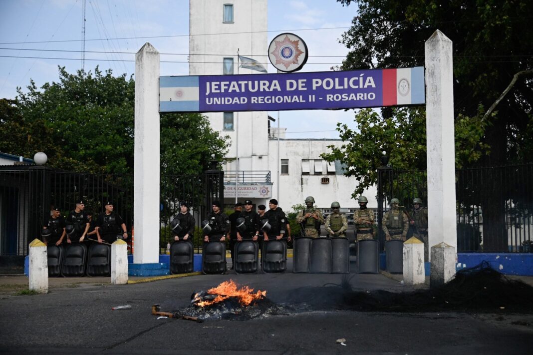 Segundo dia de protestas de policías frente a la jefatura de Rosario por bajos salarios y condiciones laboralesMarcelo Manera – LA NACION